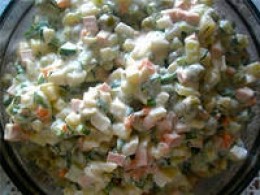 Tip: To make a salad (any) tastier try to put about one dessert or table spoon (depends how you like it) of sunflower/rapeseed oil in addition to sour cream or mayonnaise.